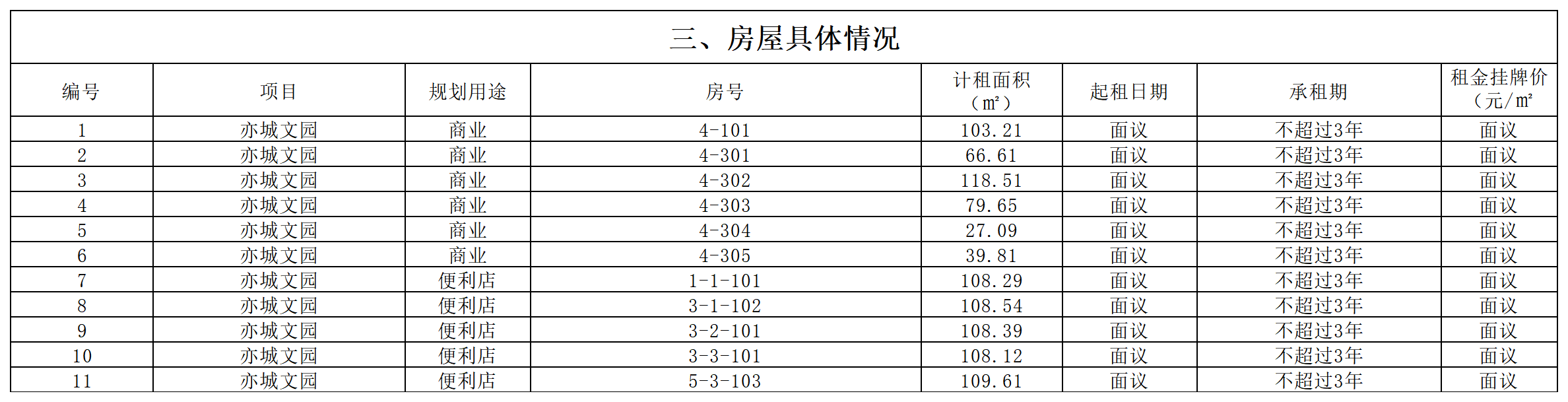 2026年亦城文园空置房屋出租信息公告