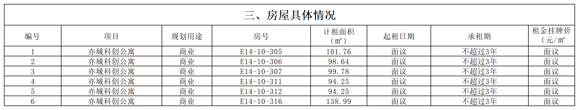 2026年E14一期房屋出租信息公告